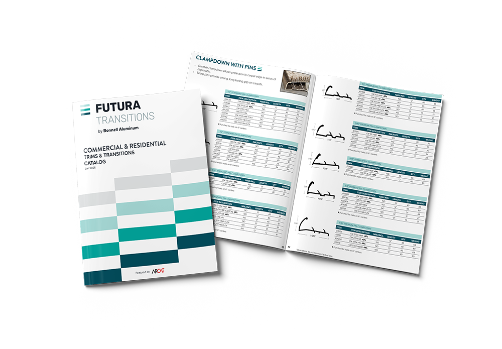 Discover the full product library of Futura Transitions solutions in our comprehensive product catalog, designed to simplify selection across every flooring transition need. From durable carpet metals to sleek LVT trims, protective safety transitions, and versatile ceramic options, our catalog showcases products engineered for performance, aesthetics, and long‑lasting reliability. Whether you’re creating smooth transitions, enhancing safety, or adding a clean finishing touch, the catalog makes it easy to find the right profile for any project.
